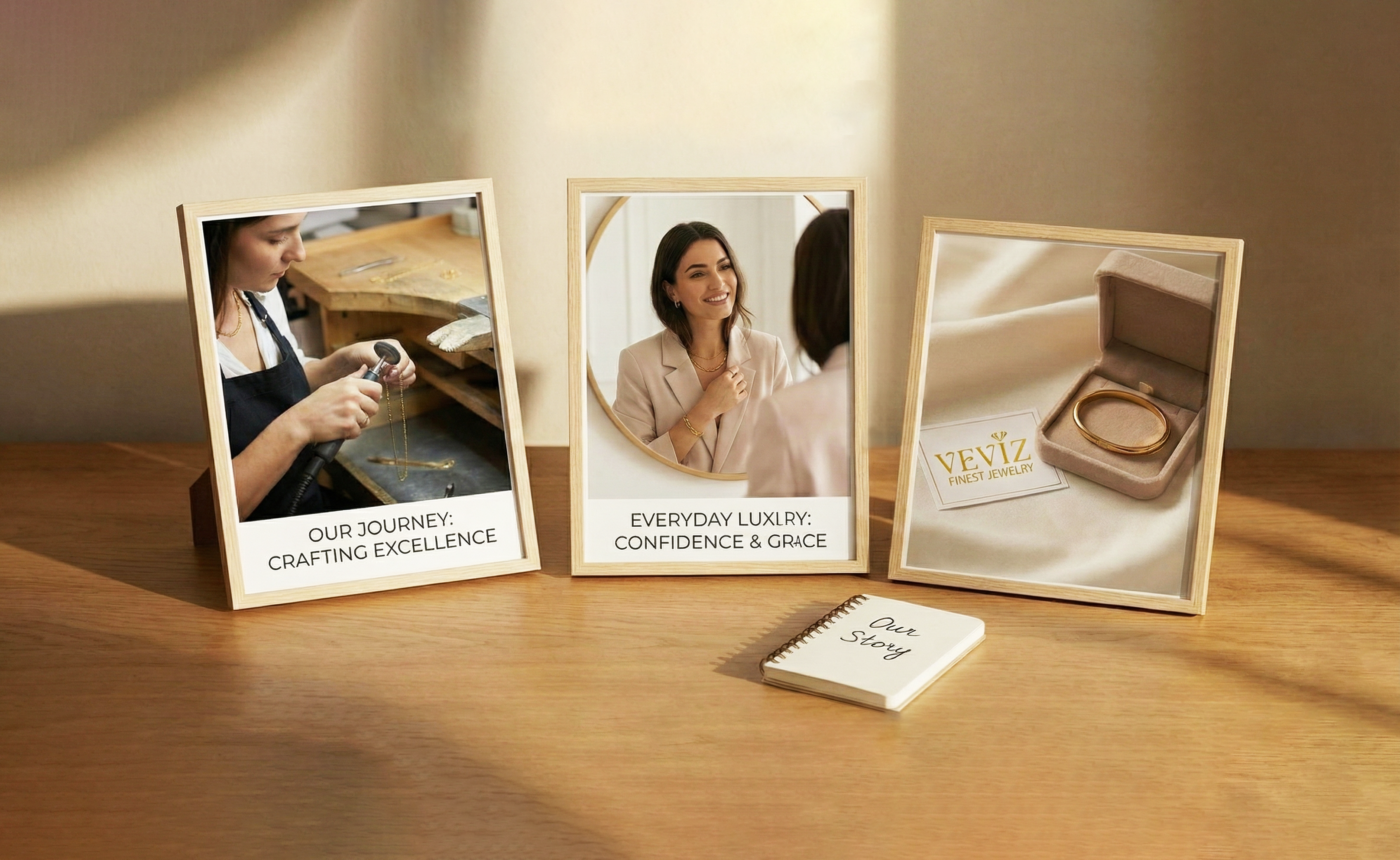 Founded with a passion for refined beauty, Veviz creates exquisite jewelry that embodies elegance and sophistication. We believe that every woman deserve a touch of luxury in her everyday life. Our journey began with a commitment to deliver timeless pieces that radiate confidence and grace, crafted from premium 18k gold-plated stainless steel for exceptional durability and shine.